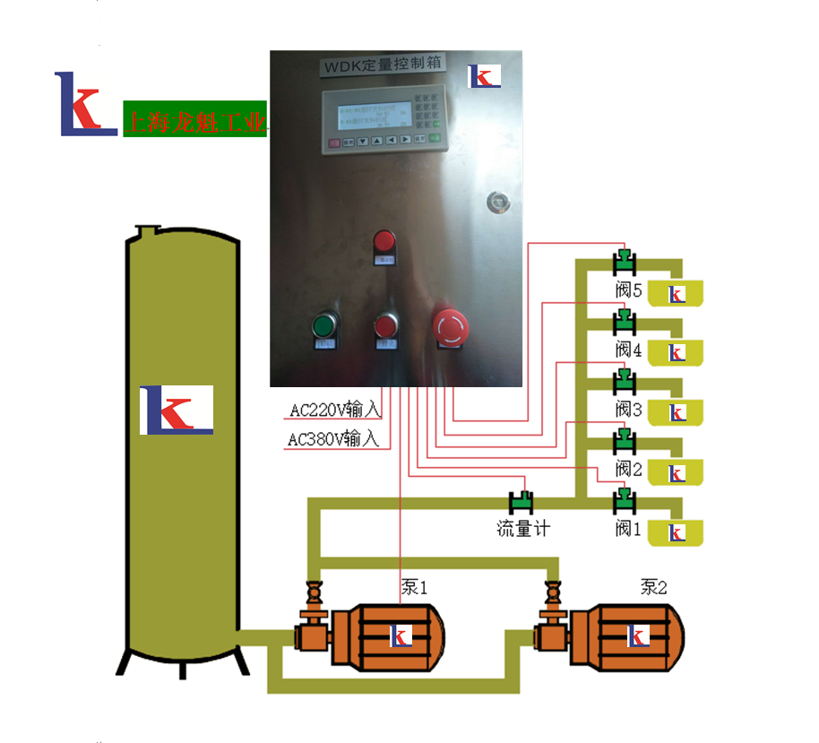 ? ? ???上海龍魁工業(yè)技術(shù)有限公司的文本式PLC可編程定量控制柜、?LKD觸摸屏PLC變頻定速定量控制柜、WDK文本式PLC可編程定量控制柜及文本式PLC可編程定量控制柜系統(tǒng)、WDK型文本或觸摸屏式PLC定量控制系統(tǒng)、WDK文本式觸摸屏PLC定時(shí)定量恒量控制柜(箱)、WDK文本式觸摸屏PLC帶打印變頻恒量控制柜(箱)、WDK觸摸屏PLC定量灌裝控制系統(tǒng)、WDK觸摸屏PLC定量配發(fā)料控制系統(tǒng)的其他定量控制配套產(chǎn)品都要根據(jù)現(xiàn)場(chǎng)流體的物理/化學(xué)屬性、周圍環(huán)境、以及具體要求來(lái)選擇合適的高精度流量計(jì)(如電磁流量計(jì),渦輪流量計(jì),齒輪流量計(jì),質(zhì)量流量計(jì)等)來(lái)測(cè)量流量,?根據(jù)測(cè)量介質(zhì)、管道口徑、流量范圍、控流量大小、電機(jī)與泵的速度、防腐、防爆、防護(hù)等級(jí)等參數(shù)和要求進(jìn)行設(shè)計(jì)及配置選型WDK文本式或觸摸屏定量控制柜(箱)及WDK文本式或觸摸屏定量控制系統(tǒng)